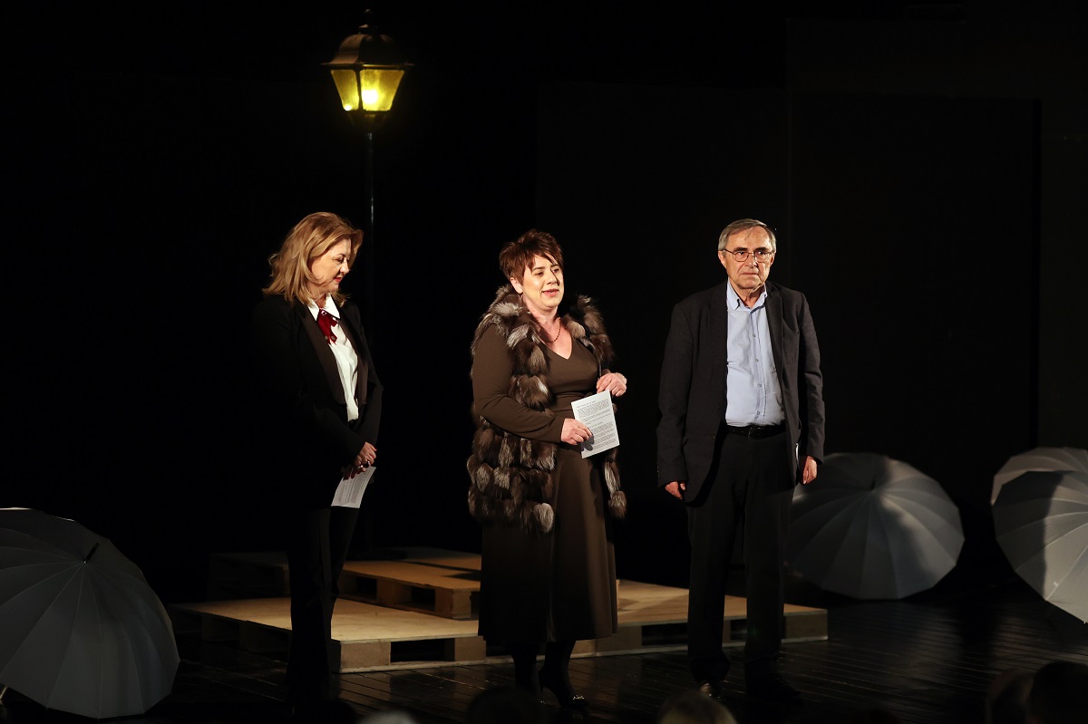 Πριν την έναρξη της παράστασης, χαιρετισμό απηύθυνε ο πρόεδρος του ΔΗΠΕΘΕ Ιωαννίνων Γιώργος Καψάλης, ο οποίος καλωσόρισε το κοινό στην ανακαινισμένη αίθουσα του Καμπέρειου Θεάτρου και κάλεσε τους πολίτες να στηρίζουν το θέατρο και τις πολιτιστικές δράσεις της πόλης.